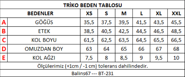 Model Ölçüleri: Boy: 175 cm Kilo: 52 Bel: 70 cm Göğüs: 82 cm Kalça: 88 cm