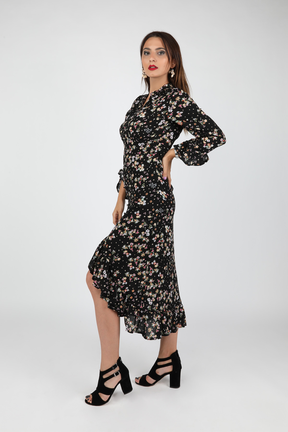 Pamuk iç astar, fırfırlı yırtmaç detaylı,