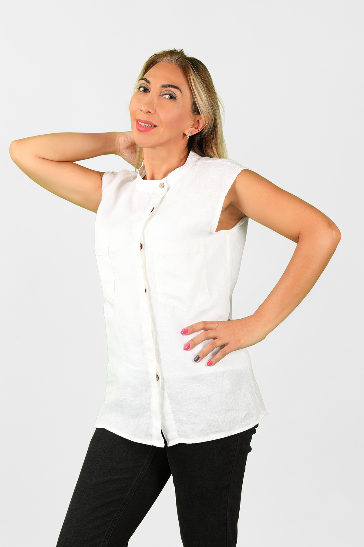 Kadın Dökümlü Keten Gömlek
