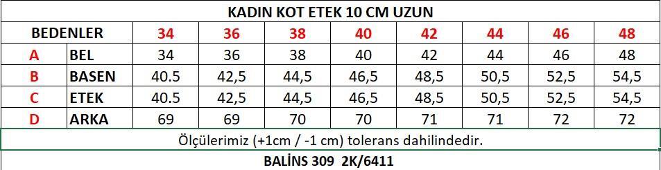 Normal BelModel Ölçüleri: