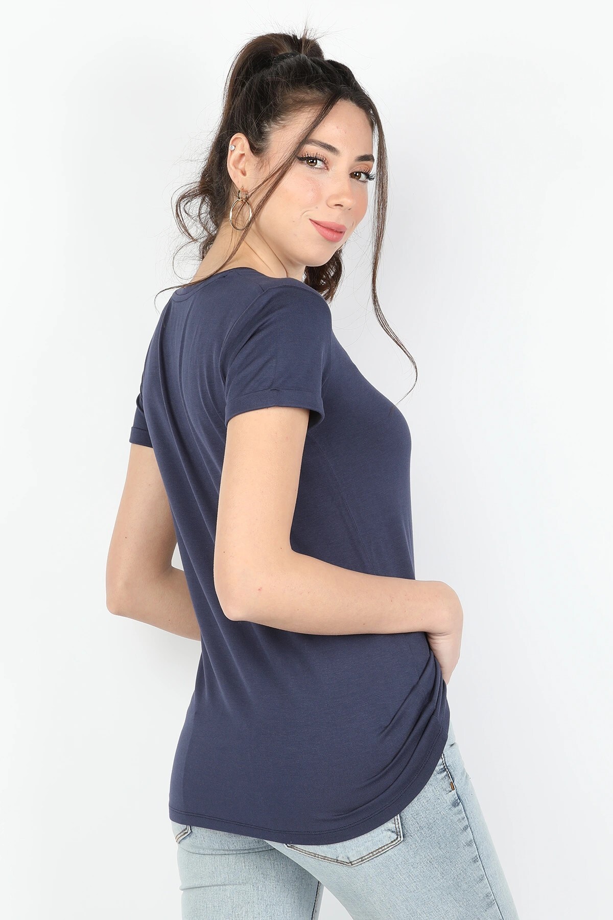 Kadın Viskon Kısa Kollu Tişört Lacivert