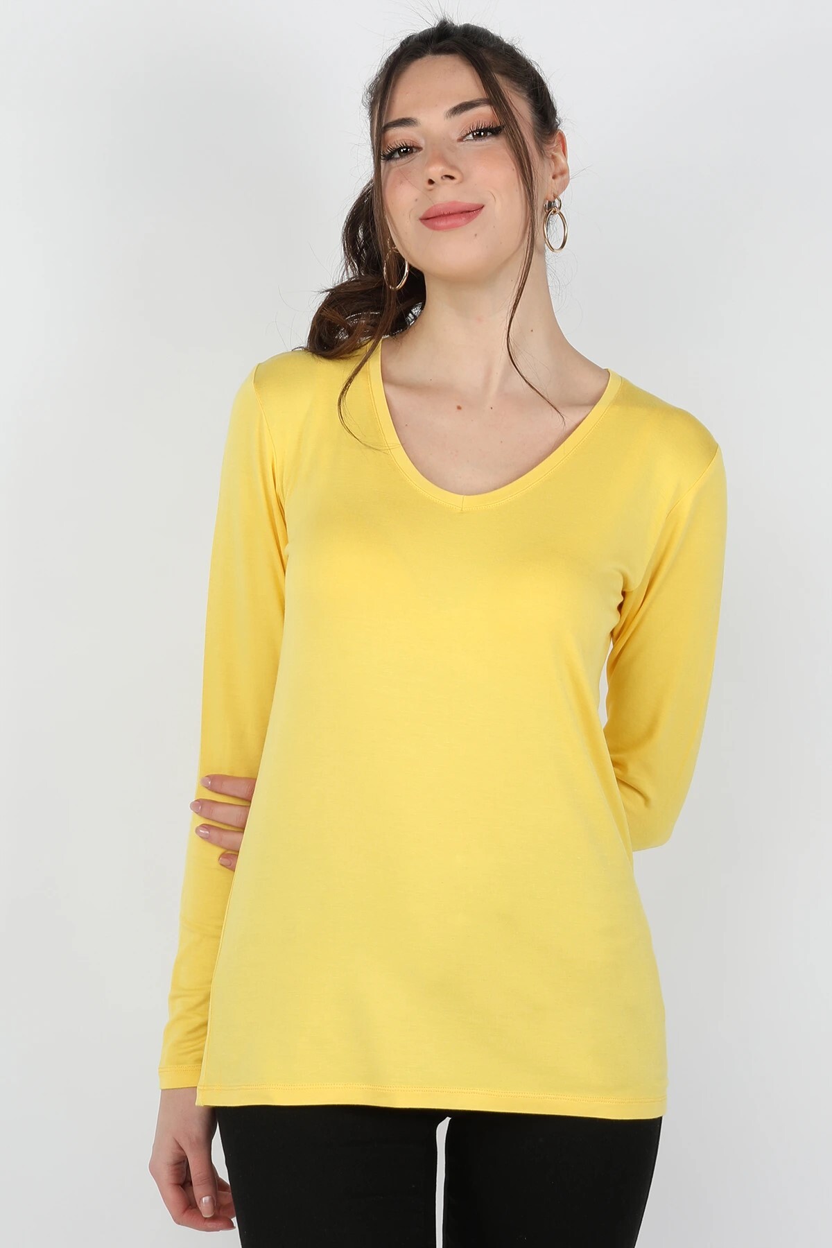 Kadın Viskon Uzun Kollu Tişört Sarı